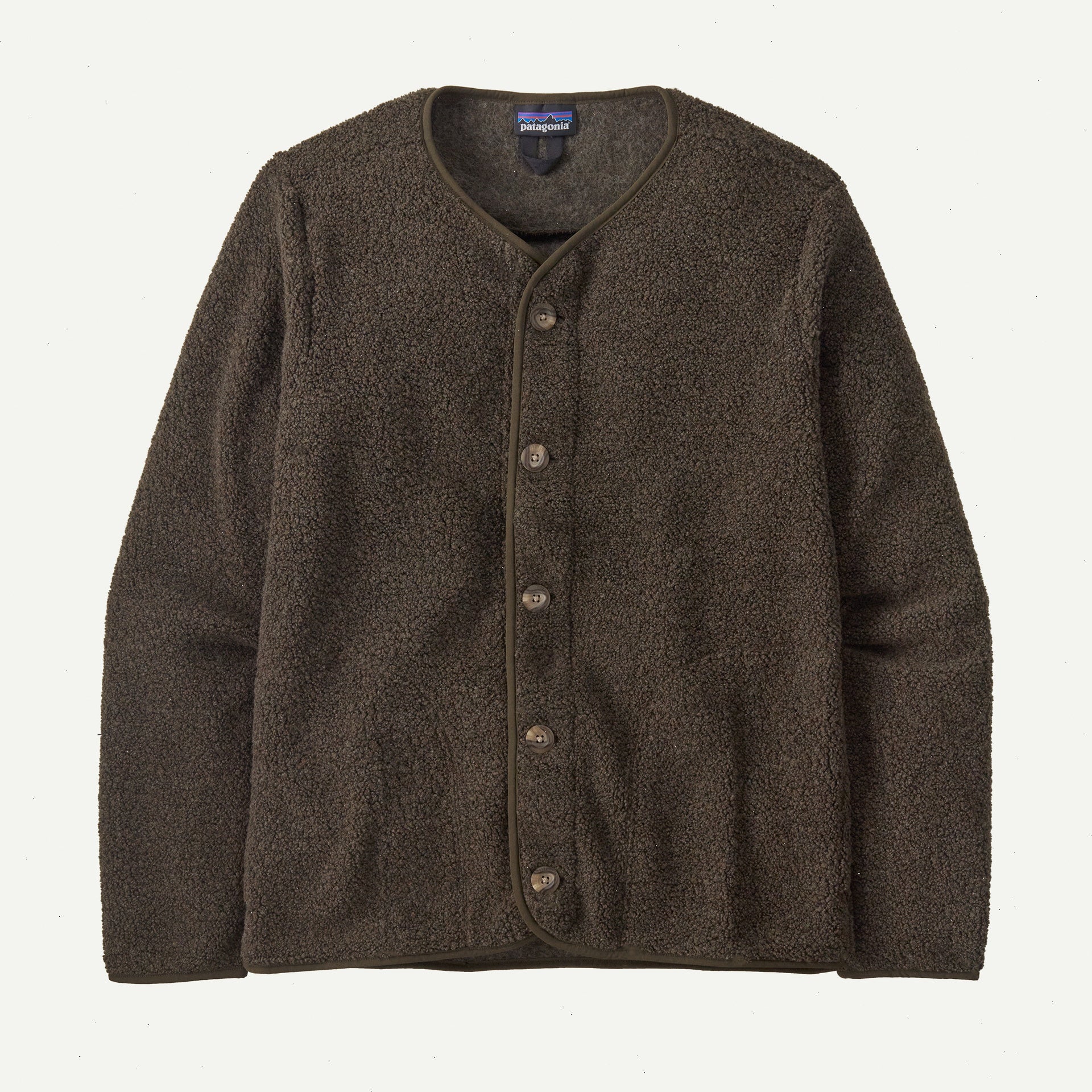 Finishing binding at neck, center front, cuffs and hem add durability and a classic cardigan style