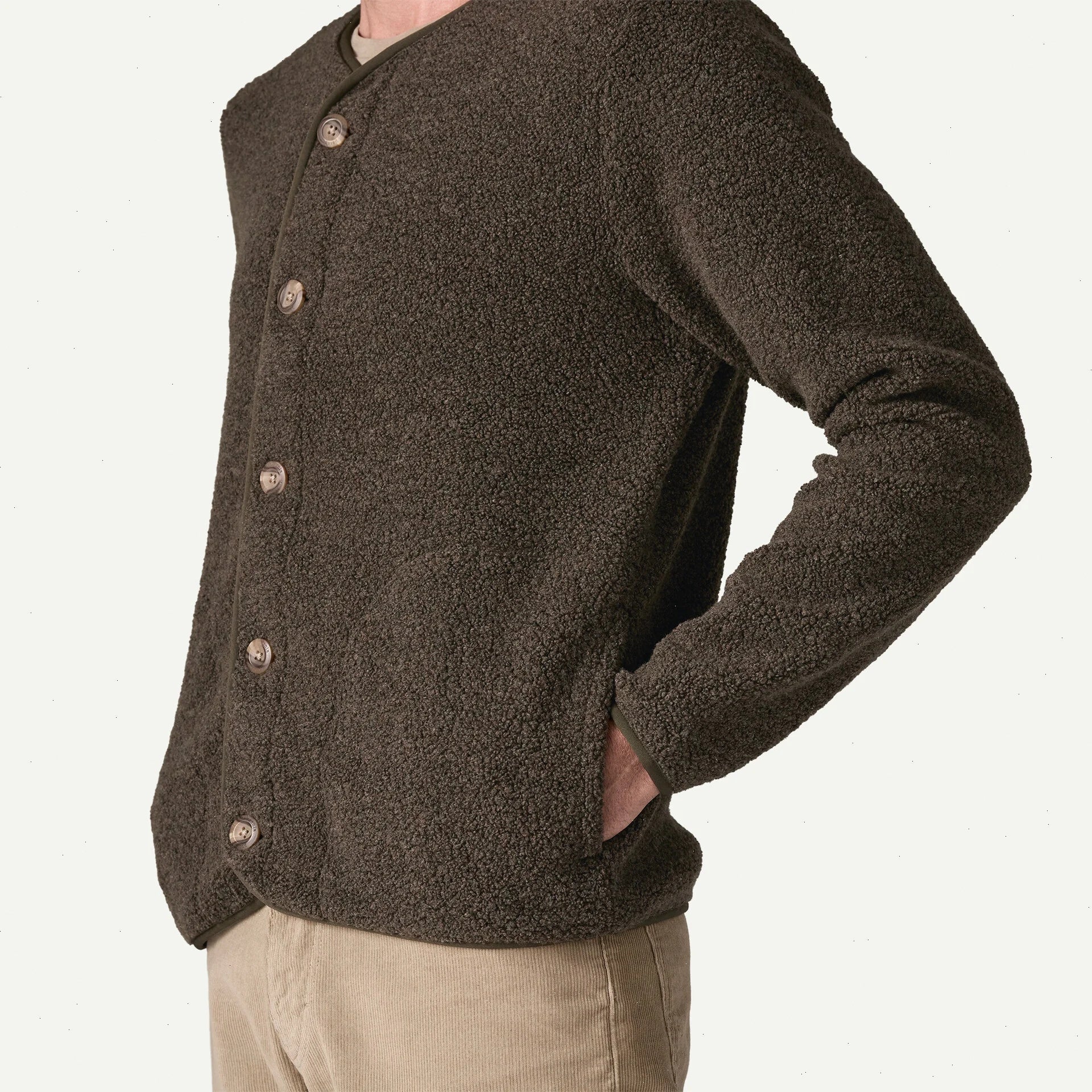 Full-length button-front closure allows you to regulate temperature; V-neck gives it a classic cardigan design that can be dressed up or down