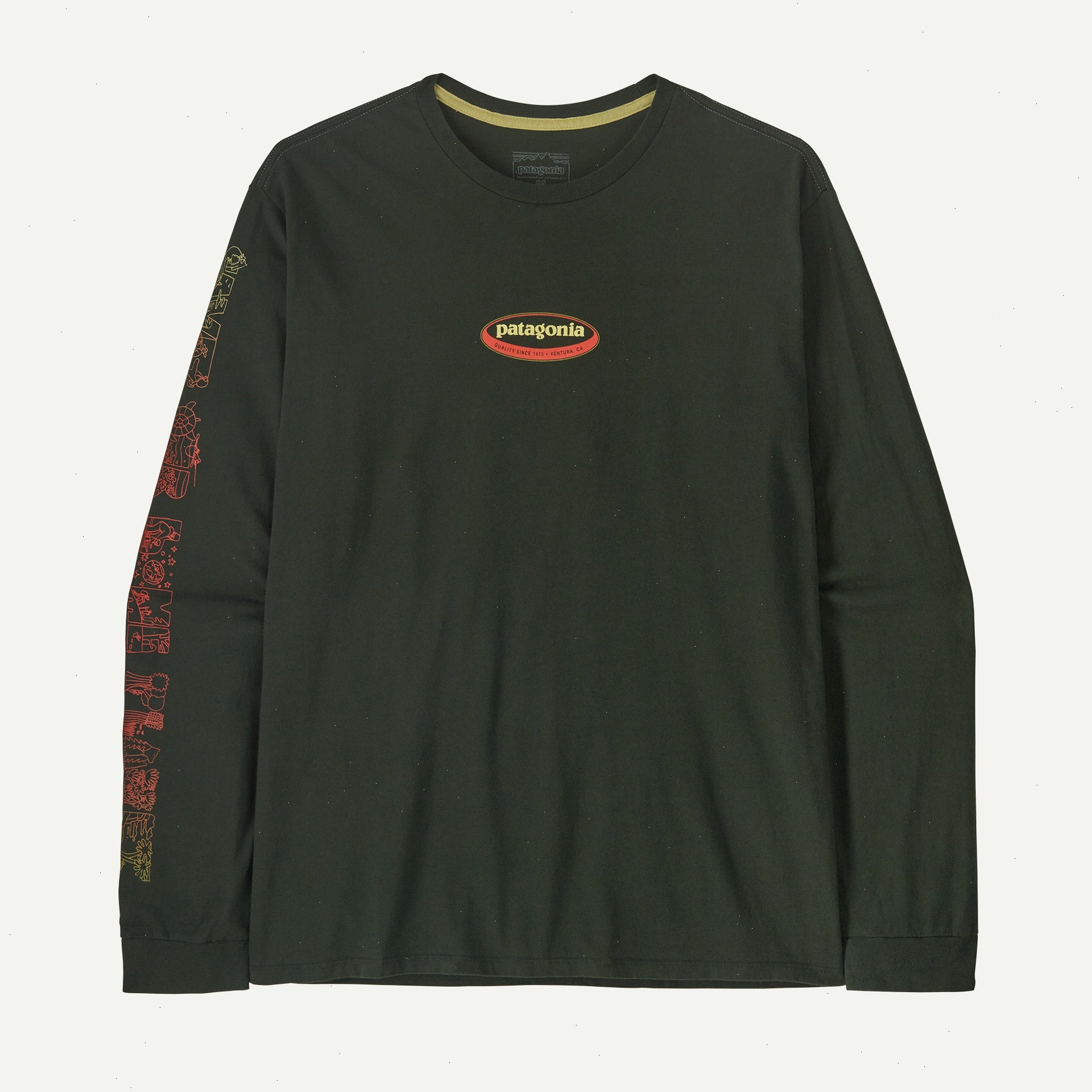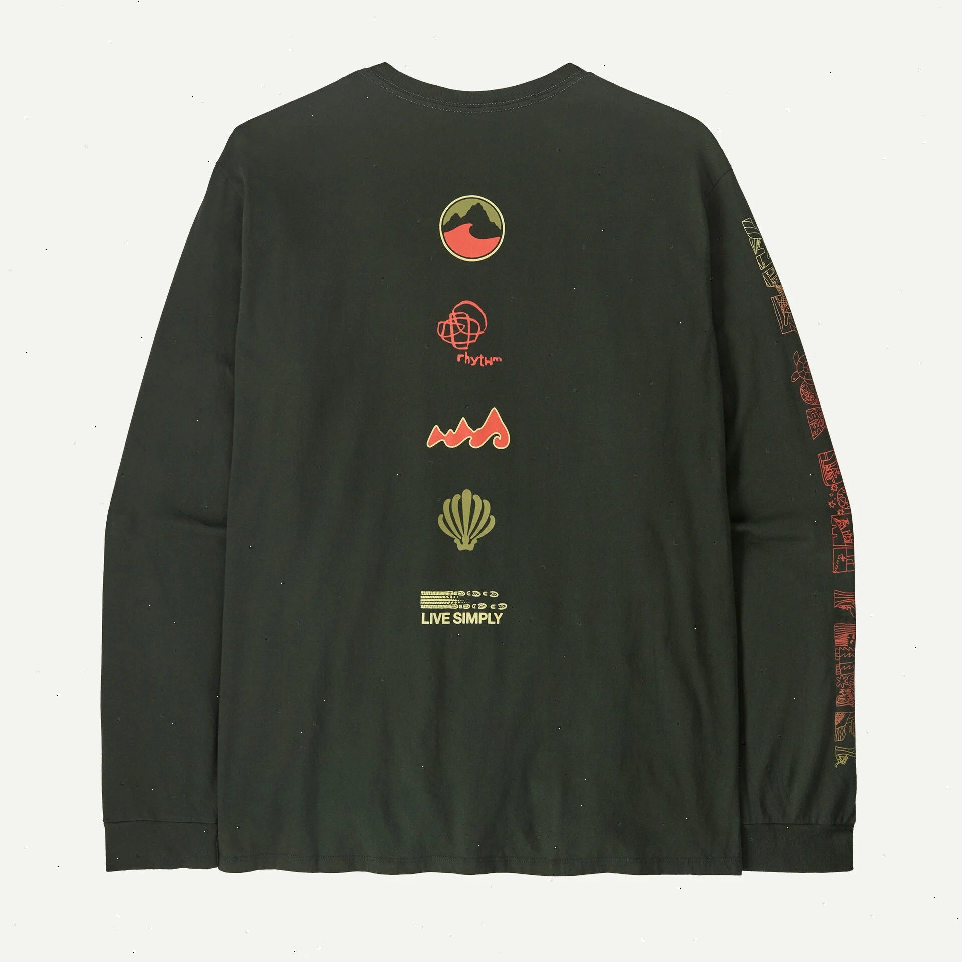 Long Way 'Round artwork takes us back graphically. Look for our circa '95 oval logo; the cult-favorite Rhythm™ design for climbing clothes; an early surfboard graphic; our Water Girl® shell and more. We screen printed the graphic on our Men's Long-Sleeved Long Way 'Round Organic T-Shirt, which is 100% organic cotton jersey and made in a Fair Trade Certified™ factory.