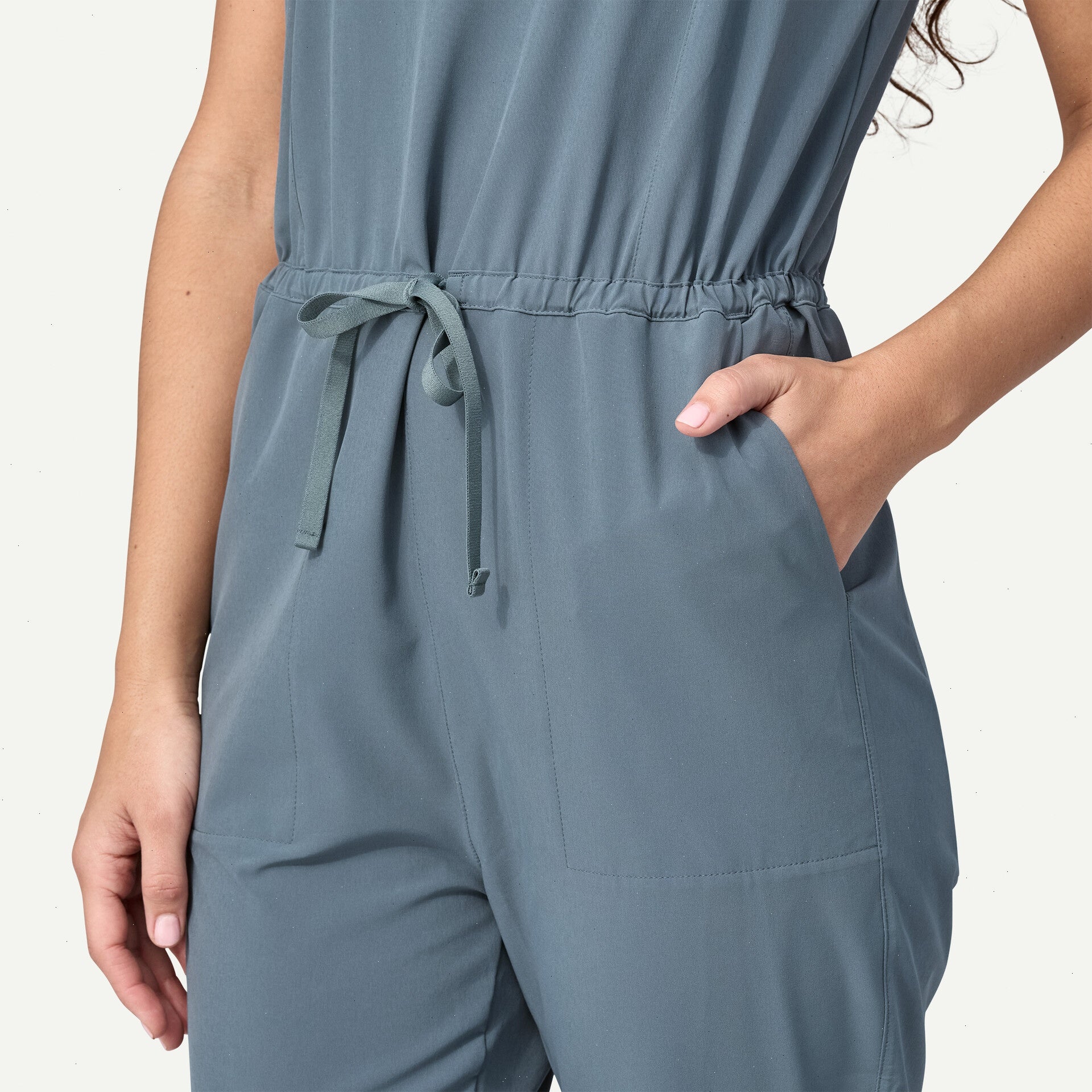 3.1-oz 89% recycled polyester/11% spandex stretch plain weave with a durable water repellent (DWR) finish made without intentionally added PFAS
