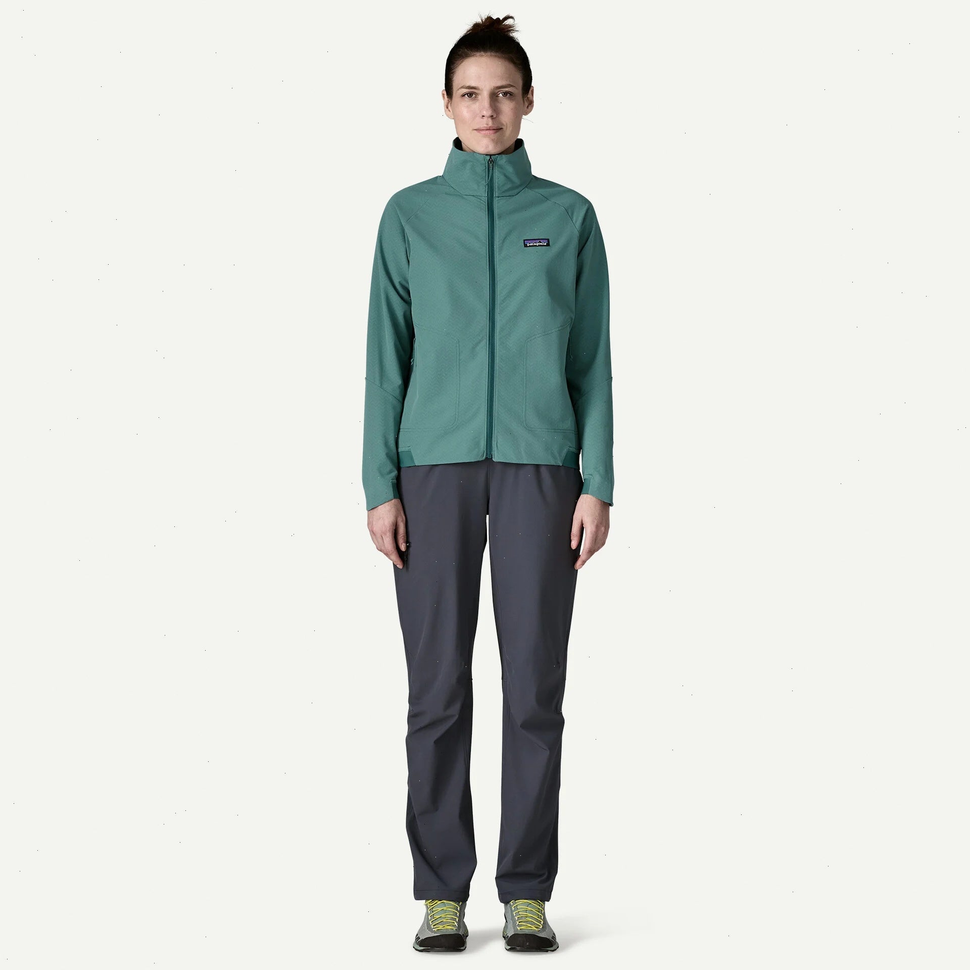 5.9-oz 90% recycled polyester/10% spandex breathable stretch double weave with a durable water repellent (DWR) finish made without intentionally added PFAS