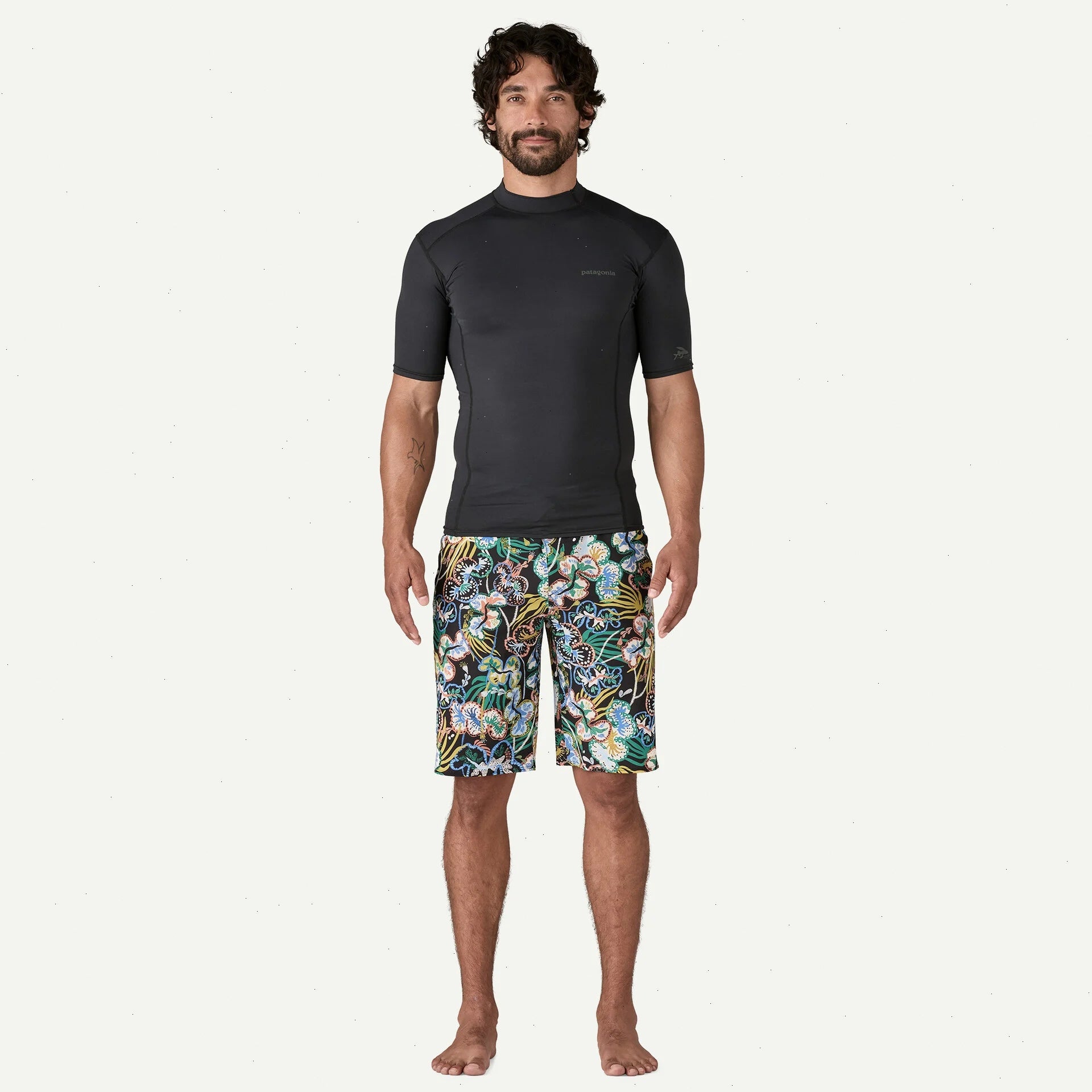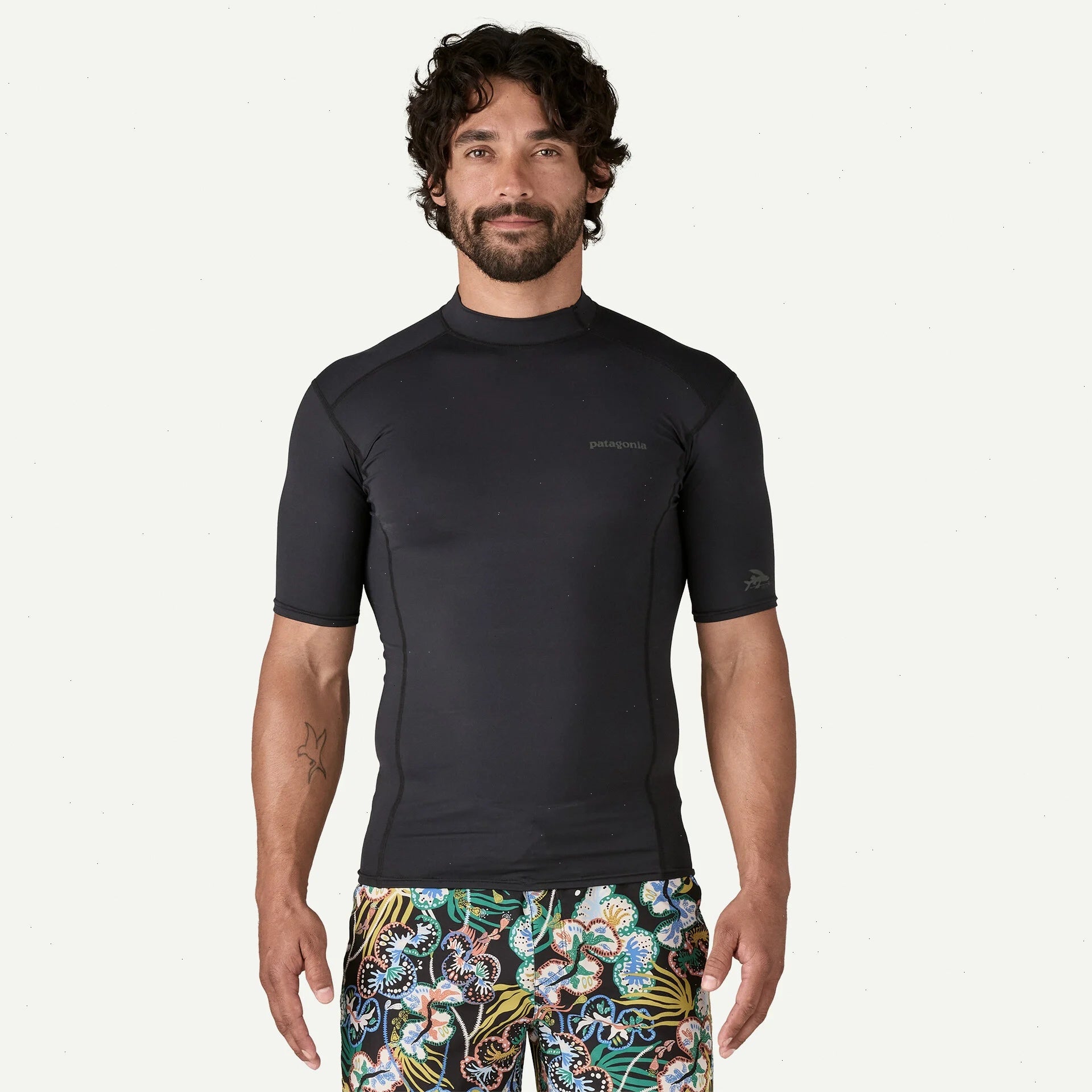 The fabric is made from light and fast-drying 85% recycled polyester/15% spandex jersey with four-way stretch and 40+ UPF sun protection