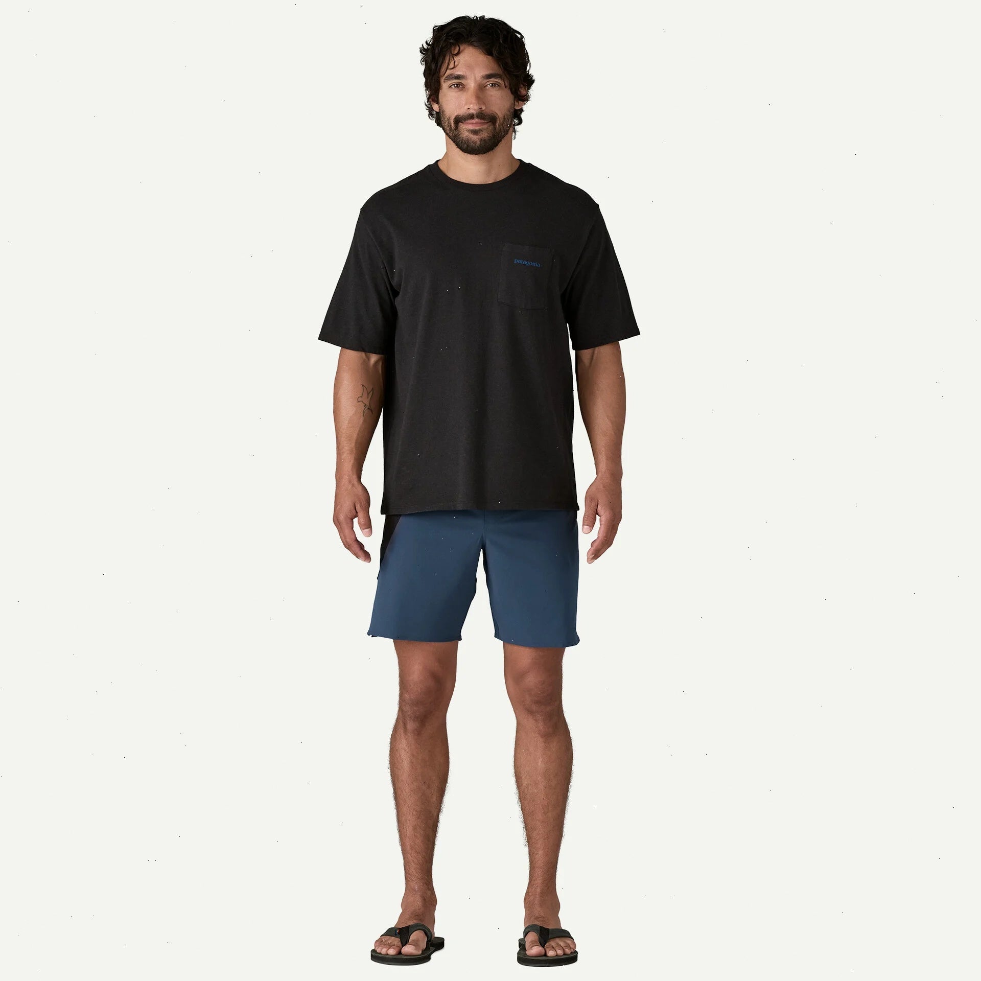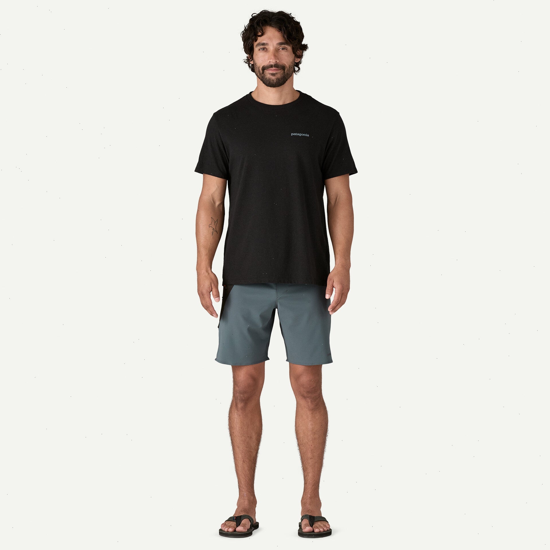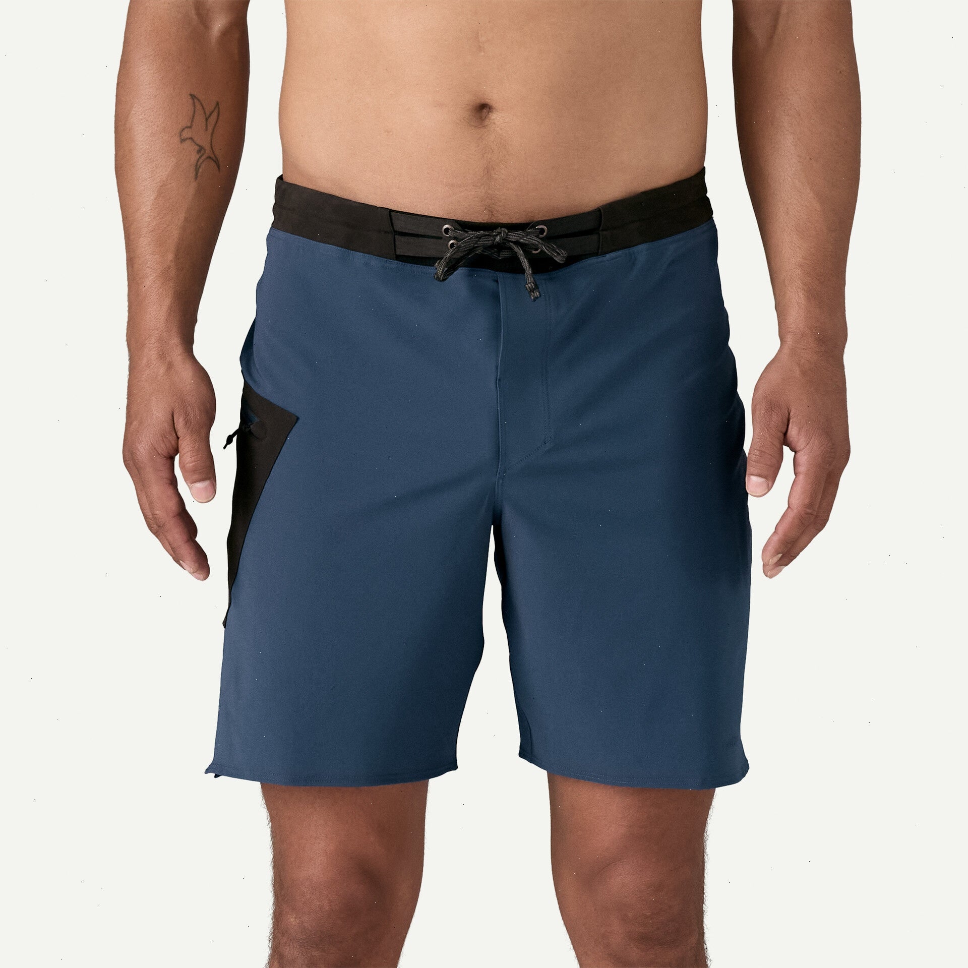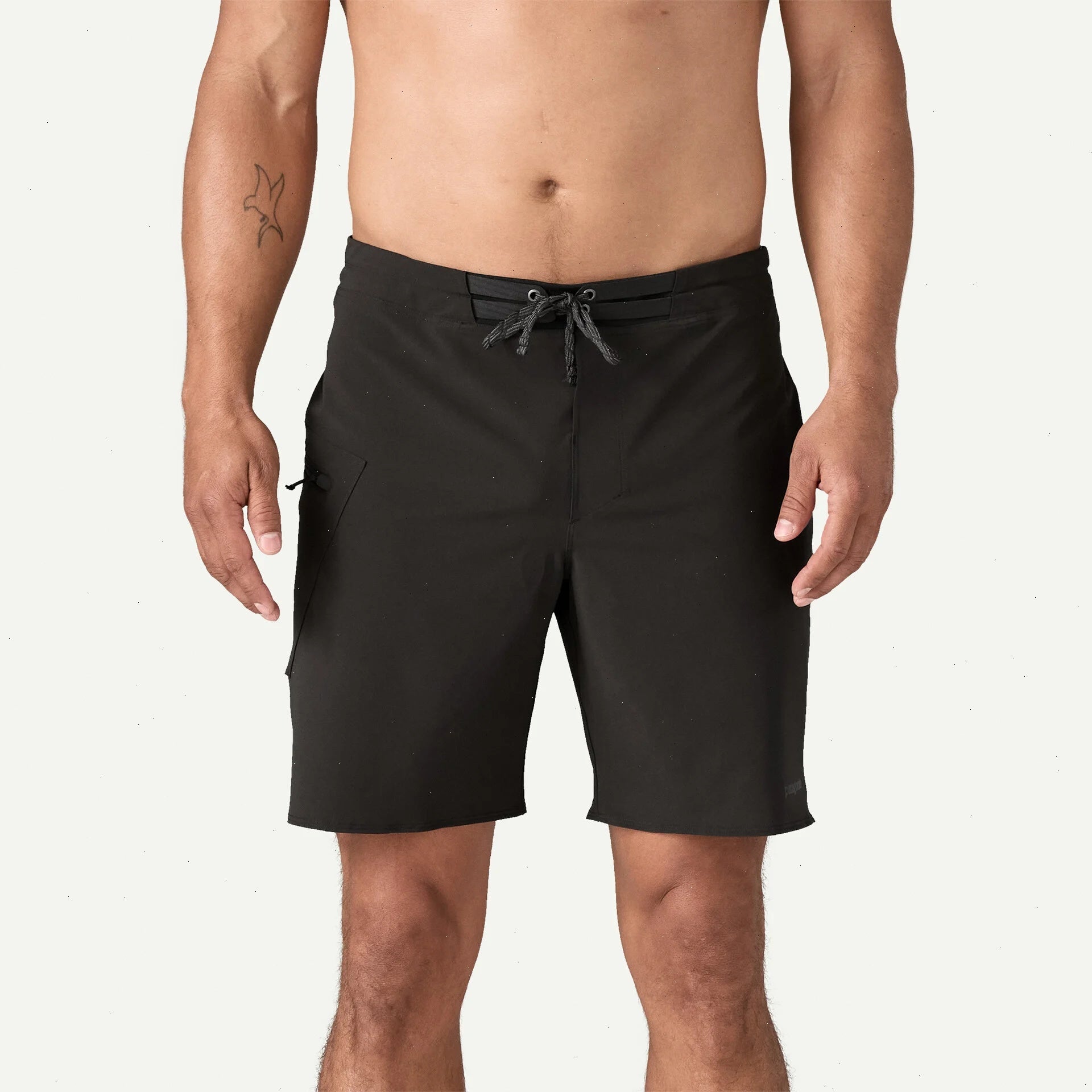 4.8-oz 86% recycled polyester/14% spandex plain weave with four-way stretch and a durable water repellent (DWR) finish made without intentionally added PFAS